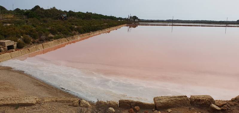 Dans le Parc protégé d'es Trenc, à Coté de la plage du même nom, les salines sont cultivés et utilisés pour la production de sel.